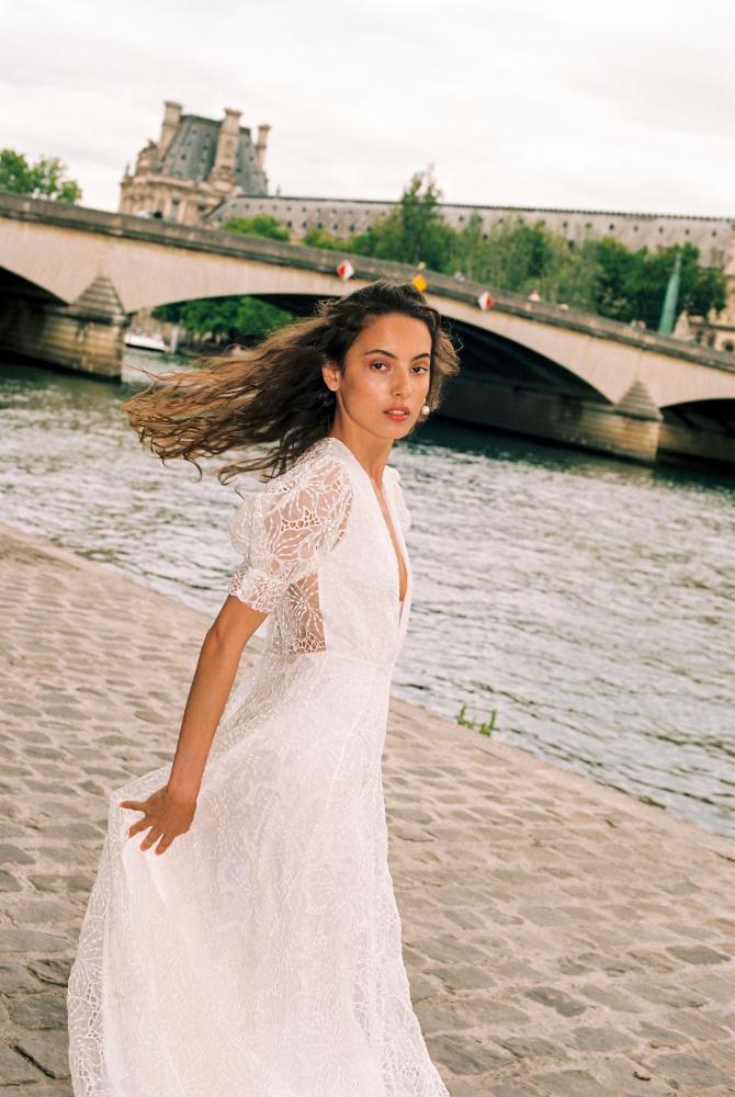 Handmade in Paris, this lightweight and comfortable gown is perfect for brides seeking a refined, versatile silhouette.